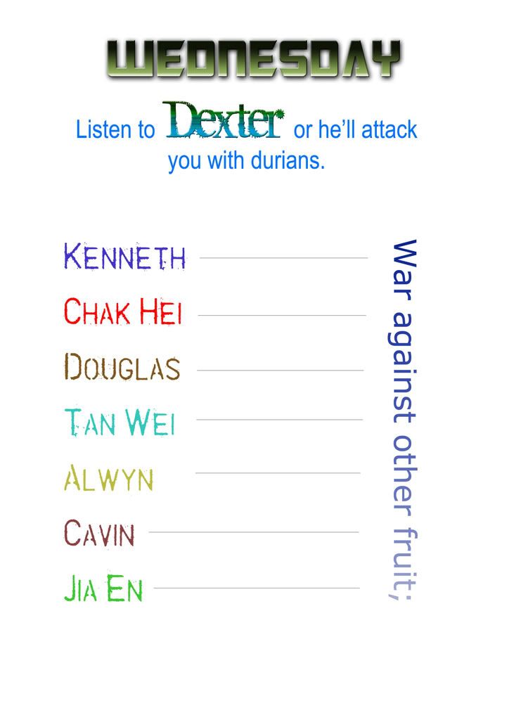 Okay guys, I've printed the duty rosters for our class so that the stupid piece of paper won't make the class look boring.
