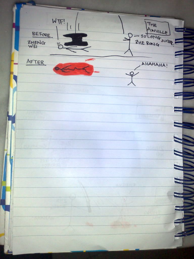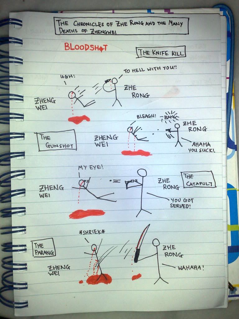 It is called "The Chronicles of Zhe Rong and the Many Deaths of Zheng Wei". Anyway I did this during Maths and Science periods when we were in our groups, so you can obviously tell that I was very bored. -.-